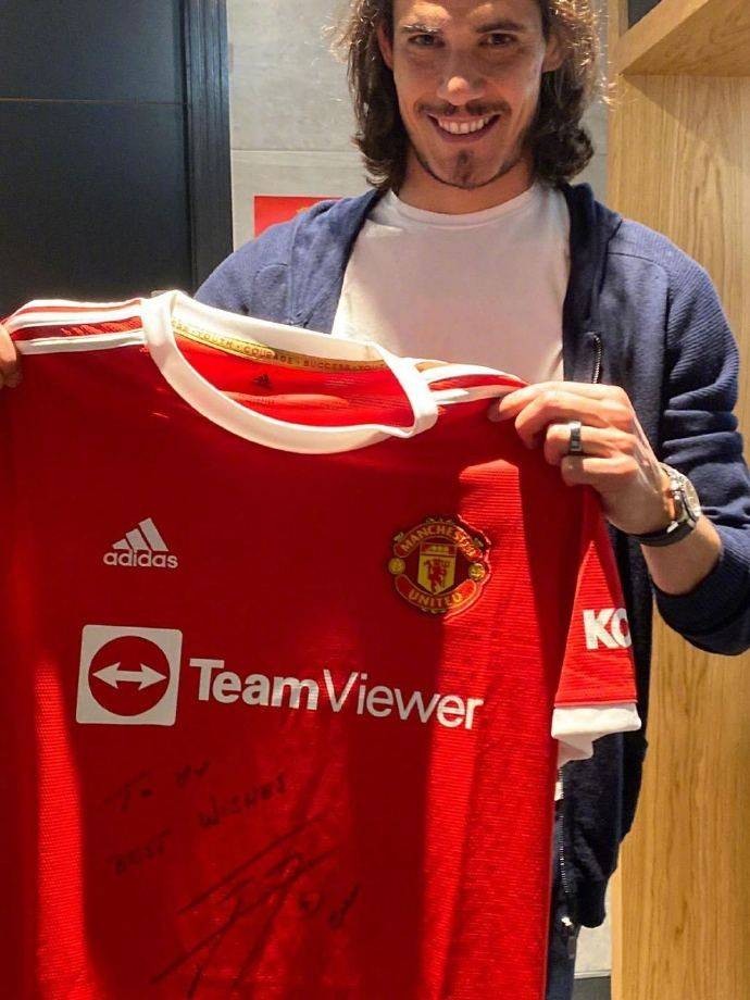 【得知自己是郑州暴雨中年轻医生的偶像,卡瓦尼送签名球衣致敬】