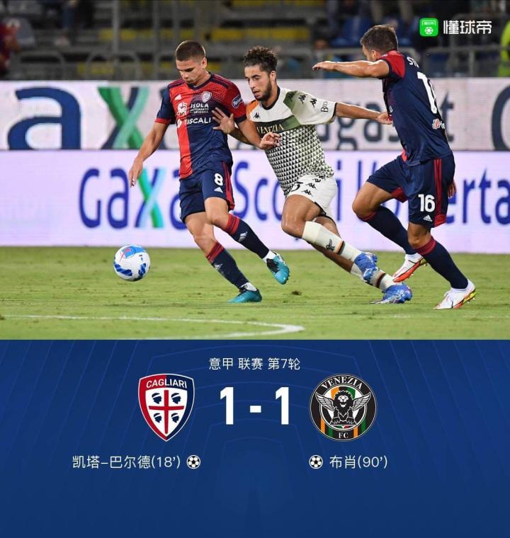 【卡利亚里1-1遭威尼斯绝平联赛未尝胜绩,凯塔破门,布肖绝平】