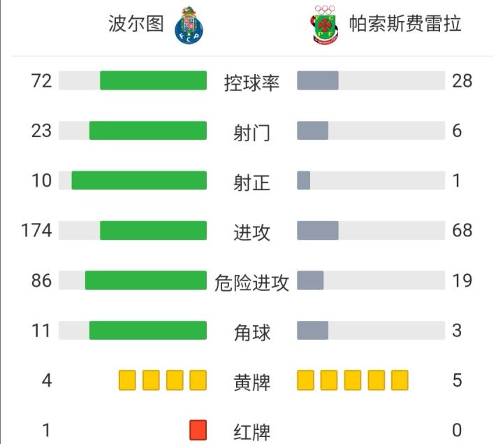 第18分钟,卢卡斯-席尔瓦单刀低射攻门被迪奥戈-科斯塔封出,努诺-桑托斯跟进兜射空门得手,帕索斯费雷拉反客为主1-0领先!