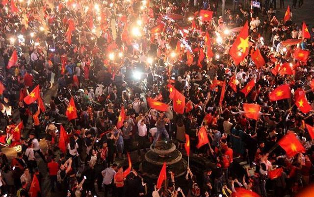 (图)越南球迷庆祝球队在2018年亚运会晋级4强
