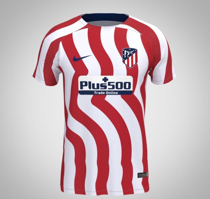 同时,该足球装备网站还披露了两张2022-23赛季的马竞主场球衣。如果披露的图片信息属实,那么这件球衣将是马竞俱乐部历史上第一次使用挥舞的红白条纹作为球衣的主元素。