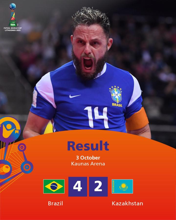 本届五人制世界杯的三、四名决赛已结束,比赛中两度...穿越黑暗 @懂球帝2021-10-04 00:52本届五人制世界杯的三、四名决赛已结束,比赛中两度落后的巴西最终4-2逆转战胜了哈萨克斯坦,获得赛事季军,拿到第四名的哈萨克斯坦也创造了队史最好成绩。展开更多