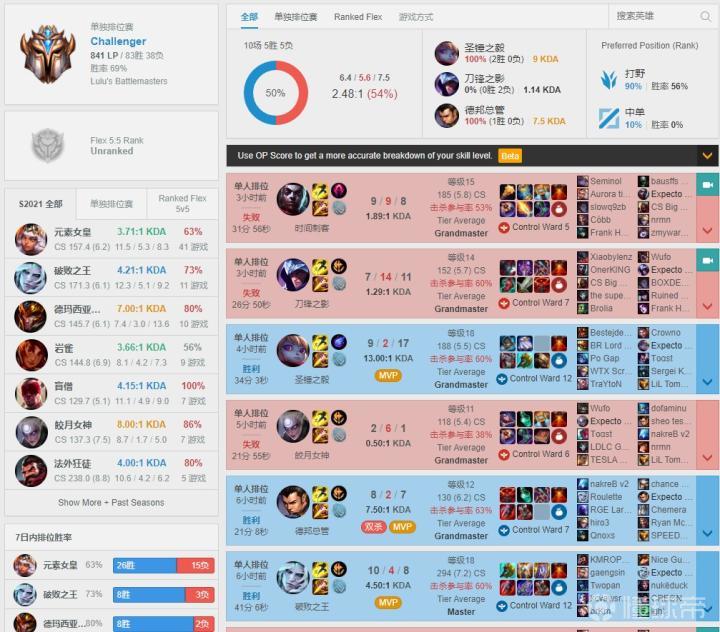 峡谷全视野今天EDG打野Junjia选手成为第一个登上英雄联盟欧服王者的LPL选手,目前已经王者841分,并且拥有69%的胜率。