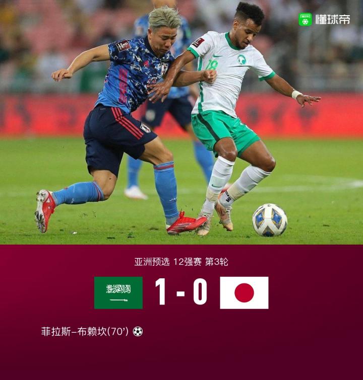 第71分钟,柴崎岳回传失误,菲拉斯-布赖坎单刀破门,沙特阿拉伯1-0日本!