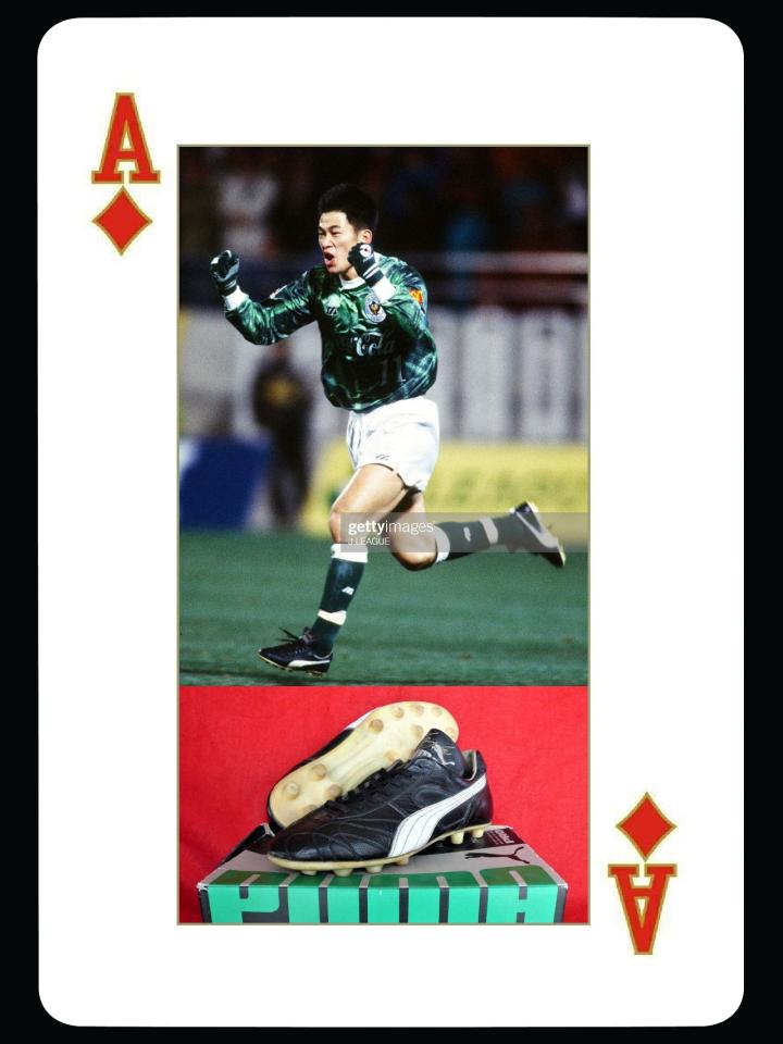 除了三浦知良,日本足坛还有另一位元老,1998年世界杯日本队的主力前锋中山雅史,他打入了日本队在世界杯正赛的首个进球,当时他使用的球鞋是para mexico的红色鞋钉本版。他还曾经在1998年的j联赛中4场比赛打入16球,3分15秒完成帽子戏法,创造了吉尼斯世界纪录。中山雅史的职业生涯也基本只穿日产的puma para mexico球鞋,他和三浦知良一样,也是足坛的常青树,他在2012年曾经宣布退役,但在退役后中山雅史又复出,继续踢j3联赛,直到2021年初53岁时才正式退役,要说足坛真正的玄冥二老,三浦知良和中山雅史当之无愧。