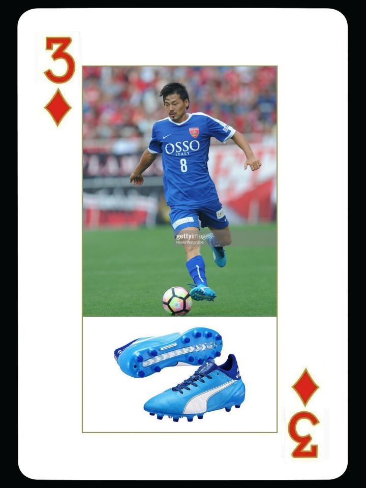在日本,似乎那些常青树球员都喜欢穿经久耐用的日产puma,下面这位球员虽然名气没有上面两位大,但实力也非常不俗,松井大辅19岁就在日本j联赛崭露头角,成名后,曾经留洋法甲勒芒,之后在欧洲联赛混迹了10年。他参加过2010年世界杯和2011年亚洲杯,2014年回到日本后,他效力过磐田喜悦,也和三浦知良在横滨fc当过队友,下面这款球鞋可能很多人都认识,这是16-17赛季的evotouch,不过松井大辅穿的是日产版本evotouch pro j。比起国际版的,日产鞋楦更加宽敞,做工也更好一些,目前年满40的松井大辅据说效力于越南联赛。