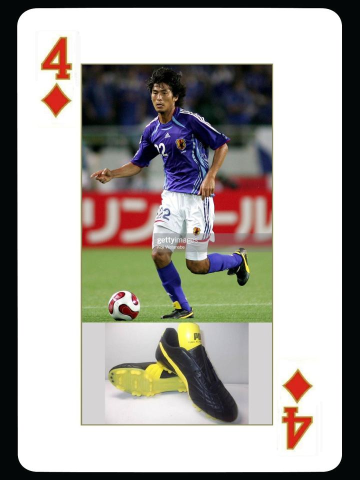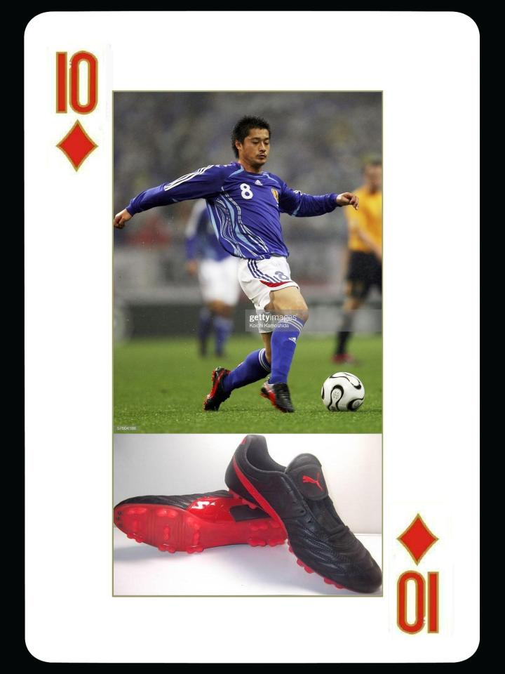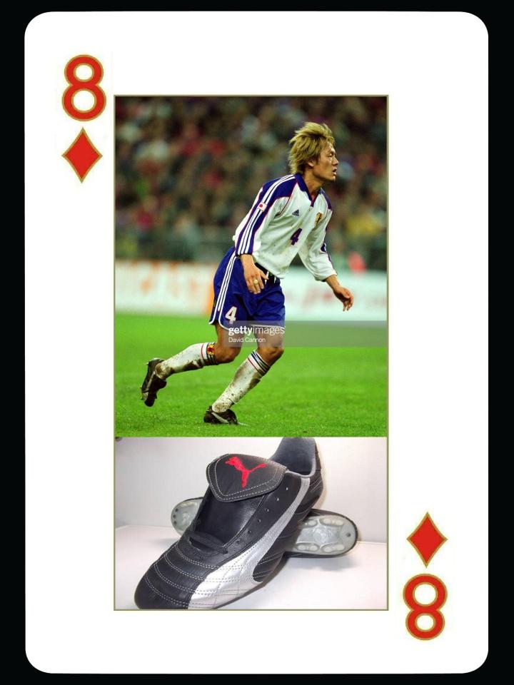 下面这位也是日本足坛的大哥级人物,也是日本历史上最优秀的中后卫之一森冈隆三。他长期效力于清水脉冲俱乐部,身体素质非常出色。在2000年奥运会和亚洲杯上表现优异,是当时日本队的队长,带领日本队获得了当年亚洲杯的冠军,2002年世界杯他也是日本队的队长。森冈隆三的职业生涯也一直使用日产puma球鞋,在他的巅峰时期,使用的日本的puma cellerator。但他没有和上面几位球员一样成为日本足坛的常青树,在2008年因为伤病退役。