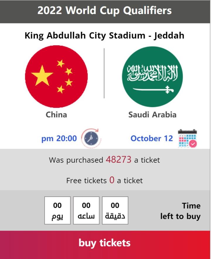 而中沙之战将继续全面向球迷开放,比赛门票自9日开始在网上出售,单张门票的价格最低为15沙特里亚尔(折合人民币约为25.8元)。根据沙特指定售票网站的数据显示,这场比赛共售出了48273张门票,再算上一些赠票等,到场观看比赛的人数在5万人左右。