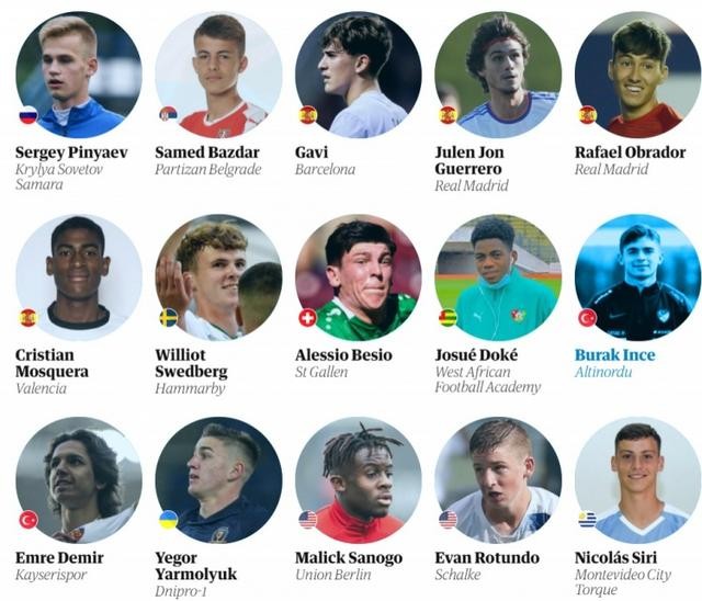 英国《卫报》在每年10月评选全球范围内60名17岁的青年才俊,并按国家划分,今年的名单如期而至,瞄准的都是2004年出生的球员,巴萨的加维、多特蒙德的穆科科等新星悉数入选。不过奇怪的是,今年的名单中没有英国的年轻球员。