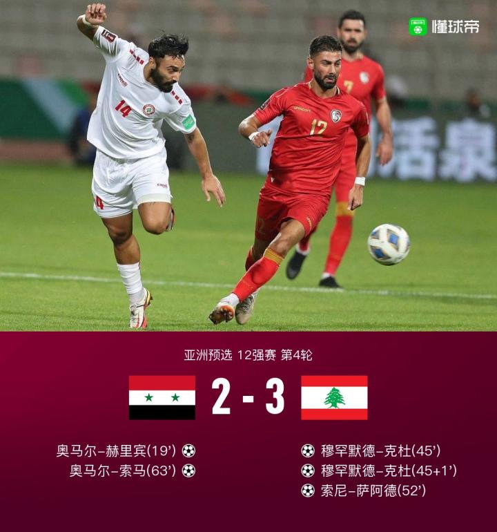 叙利亚2-3不敌黎巴嫩,穆罕默德-克杜梅开二度,赫里宾破门