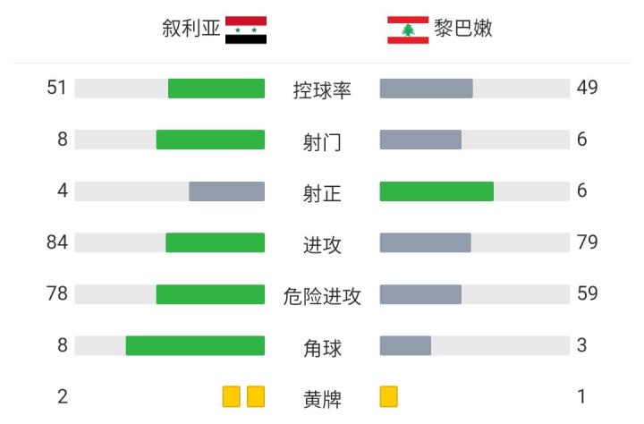 叙利亚首发:1-阿勒马、3-阿詹(56'19-阿内斯)、5-米达尼、2-萨阿德-艾哈迈德、16-韦斯、6-卡迈勒-哈米沙(56'17-优素福)、12-穆罕穆德-奥斯曼(56'18-穆罕穆德-巴赫尔)、8-阿亚斯-奥斯曼(83'11-奥马里)、10-马瓦斯、7-赫里宾、9-索马