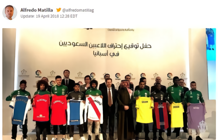狂喜之下,沙特的富豪们做出了一个让人瞠目结舌的“我花钱求你用人”计划。2017年10月,备战世界杯的沙特足协出资赞助西甲联盟,换来9名沙特国脚以免费租借的形式加盟西甲和西乙,与他们一同登陆西班牙的还有不菲的赞助。