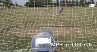 从射门的力量带来的风速我们可以看到测试结果(单位MPH):70-65-71,取平均值:68.6