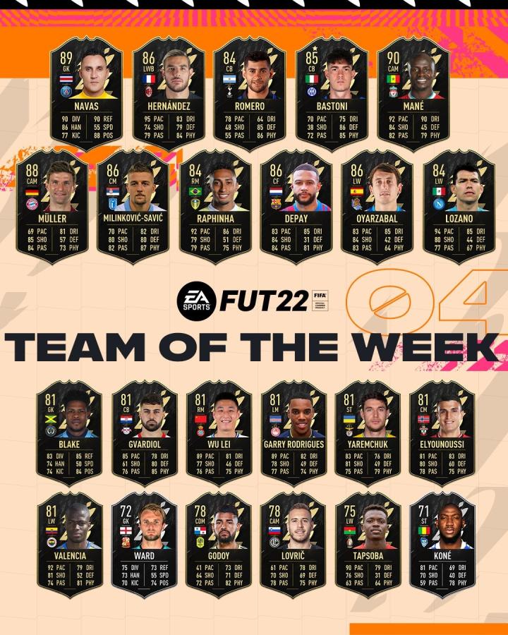 FIFA 22公布第四周周最佳球员:武磊领衔,马内、德佩等入选点赞狂魔000 @懂球帝2021-10-14 01:08足球游戏FIFA 22公布了第四周的周最佳球员,武磊凭借上周世预赛对阵越南的梅开二度入选,周黑卡的总评提升到了81分。本作中武磊的普卡总评下调到了75,而周黑卡的总评达到81,相比普卡大涨6点。TOTW的主力11人方面,凭借在国家队中的表现,纳瓦斯、特奥、罗梅罗、巴斯托尼、马内、穆勒、米林科维奇-萨维奇、拉菲尼亚、德佩、奥亚萨瓦尔和洛萨诺悉数入选。展开更多