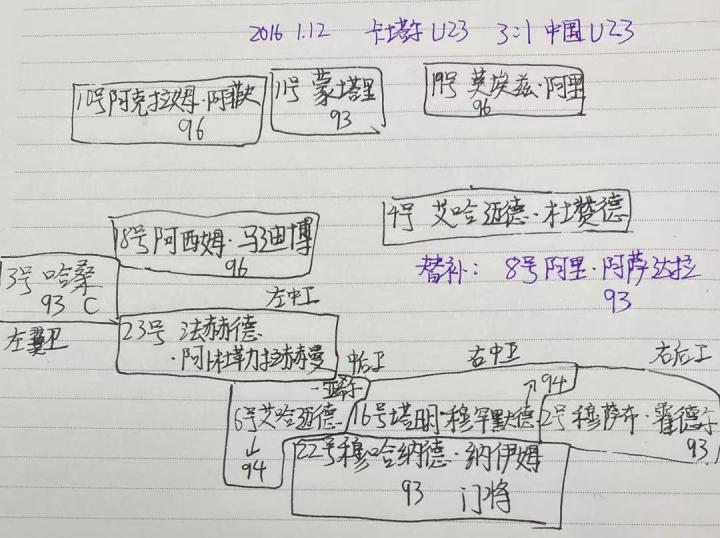 分析完对手,具体说比赛,其实93国奥的中前场并不弱于对手:吴兴涵、常飞亚、谢鹏飞、刘彬彬、张玉宁、李源一、廖力生,国足并不缺优秀的攻击手,他们很多人在同年龄段是亚洲的一流攻击手,廖力生三场比赛攻入三球更是入选最佳阵容,其中前两场比赛中两粒任意球直接破门都入选了赛事十佳球。前两场比赛初期的相似:廖力生任意球破门,中国队领先,下半场风云突变,少打一人,被扳平、反超,连丢三球,1:3输球。区别就是,第一场是中场核心徐新在比赛最后时刻的报复性踢人,第二场是大好局面下糜昊伦回传失误,杜佳被破出击扑倒对手,吃到红点套餐······(说到这,我又想到了初一熬夜看比赛当时看到红牌眼,泪流出来的我)。难过的绝对不止我一人,分析会追到门线完成极限倒钩解围的队长王彤在看到自己的解围并不能改变裁判认定犯规的判罚时,瘫倒在地上的神情,谁会不难过。