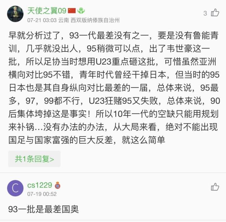 前几天看了这些言论,我真的忍不了了。我不希望我心目中自87国青以后最好的一代球员(注意,是一代,不是某个人),被乱带节奏,成为众矢之的。我虽是济南出生济南长大的铁杆鲁能球迷,但我要说明一点:93国奥绝对不是除了鲁能青训没有出人,我们不能忽视绿城、东亚、富力、泰达、舜天等多队的努力,而且要说明一点:那支93国奥中,鲁能青训主力球员其实只有4人,即王彤刘彬彬和吴兴涵的93三少组合加上糜昊伦。
