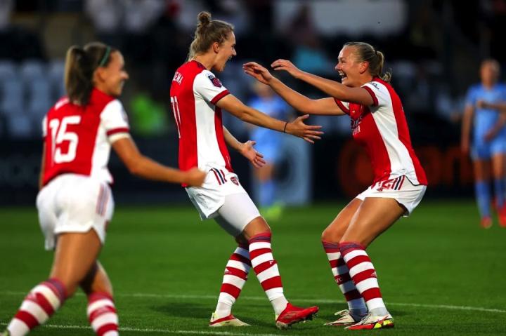 人气与实力俱佳的阿森纳女足,在社媒上的影响力甚至已经不输于男足(中间为荷兰中锋米德玛)