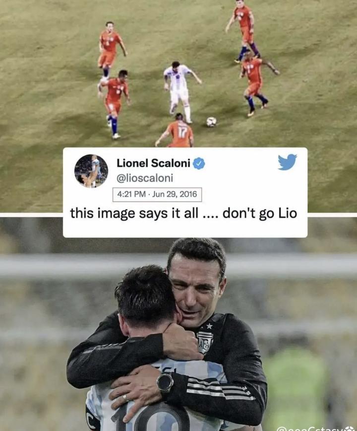 后面的故事就是我们知道的那样,阿根廷二十多年都没能拿一座冠军,他拿了。
