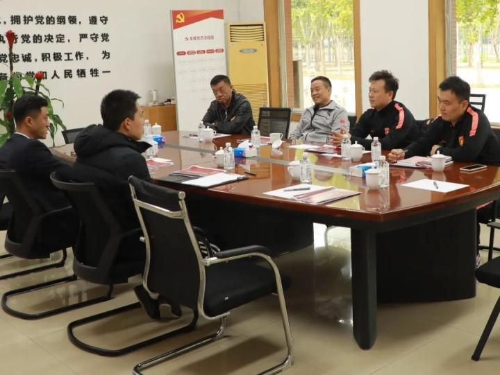 随后在训练基地办公楼的党建办公室,考察团听取了河北足球俱乐部2021年青训工作汇报。省、市体育局的领导对河北足球俱乐部完善的青训梯队建制、过往几年取得的优异成绩、为河北足球培养优秀人才,以及多年来对足球青训事业的坚持、贡献,表示了肯定和赞许。会议上,考察团与俱乐部领导层就目前俱乐部的经营状况和存在的困难也进行了深入地交流。