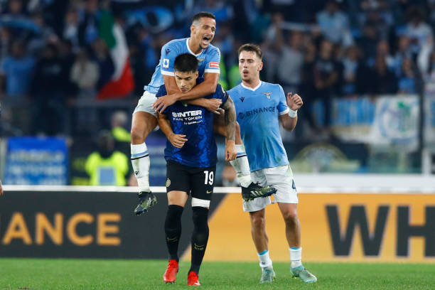 飞翔的蓝鹰在刚刚结束的拉齐奥3-1战胜国际米兰的比赛结束后,双方球员在球场内就比赛中的争议进球又产生了争论。