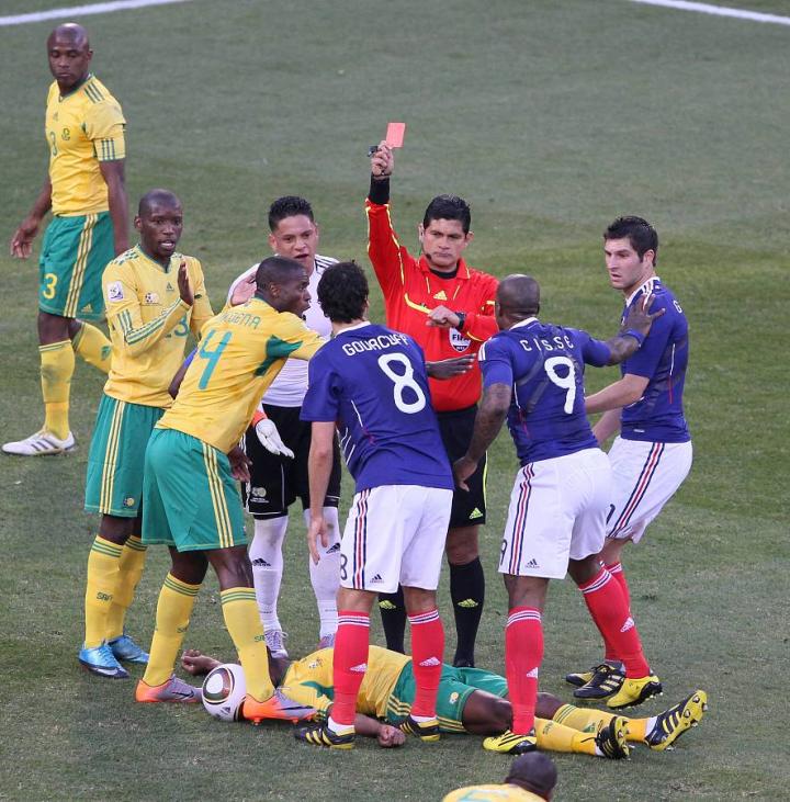 2010年世界杯,法国队闹出罢训丑闻,震惊世界足坛,直到总统萨科齐介入才缓解局势。