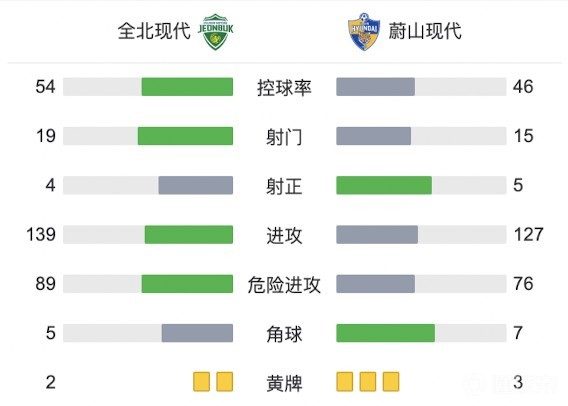 第48分钟,邦本宜裕凌空抽射破门,全北现代再度扳平比分,2-2战平蔚山。