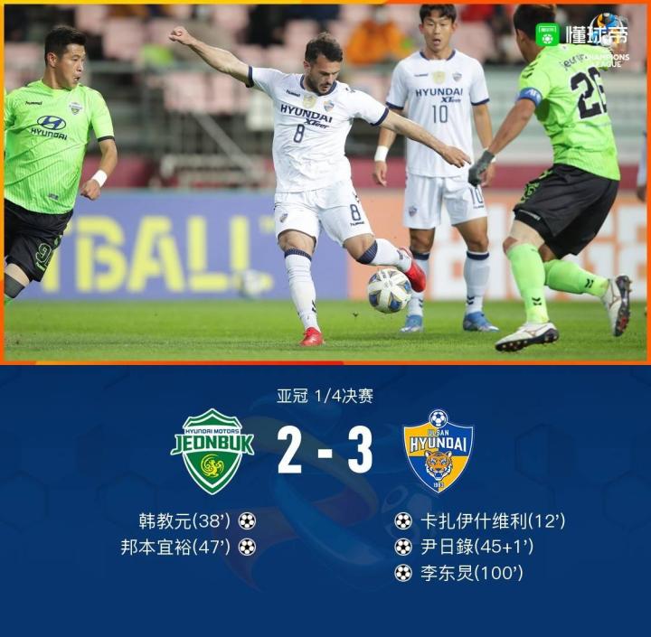 蔚山加时3-2全北闯入亚冠四强,李东炅惊天世界波制胜