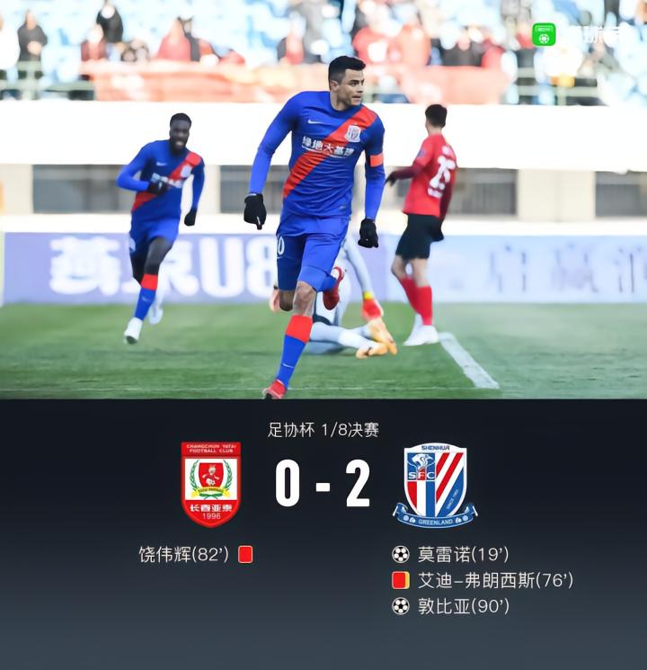 燕京啤酒|足协杯战报:申花2-0亚泰,莫雷诺建功双方均染红
