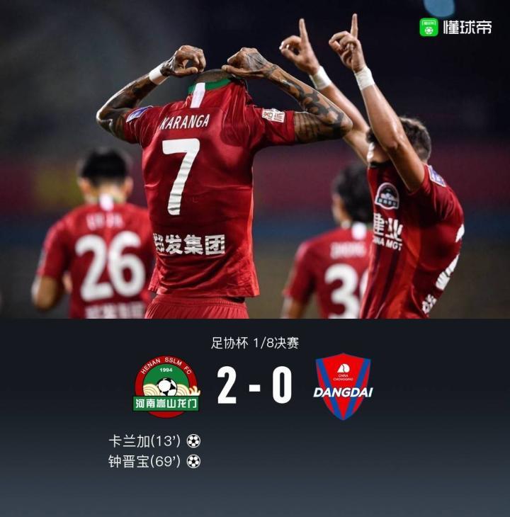 北京时间10月18日19:30,足协杯1/8决赛继续进行,河南嵩山龙门对阵重庆两江竞技。上半场,伊沃王者归来斜长传制导连线卡兰加头槌破门。下半场,陈蒲包抄推射击中横梁,布亚-图雷替补登场助攻钟晋宝推射得手锁定胜局。最终,河南2-0击败重庆,晋级足协杯8强。