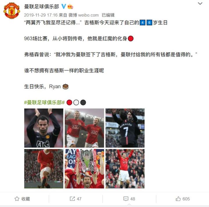 连曼联官方都玩过这个梗,不过底下也有球迷“正告”:有一讲一,两翼齐飞的那位是吉个斯。