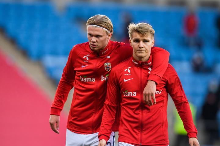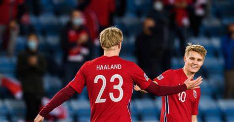 目前挪威国家队主打433和442阵型,厄德高主要踢位置靠前的右中前卫和右边前卫的位置,厄德高擅于送出直塞对于哈兰德来说是比较有利的,不过由于挪威整体控制场面能力并不强,厄德高至今在国家队6次助攻没有一次送给哈兰德,虽然两人有着良好的个人关系,但两人之间的化学反应还有待观察。厄德高目前还没有证明自己在高水平联赛中稳定的助攻能力,但从风格和位置上来说,这一对组合的未来期待值应该有8分的样子。