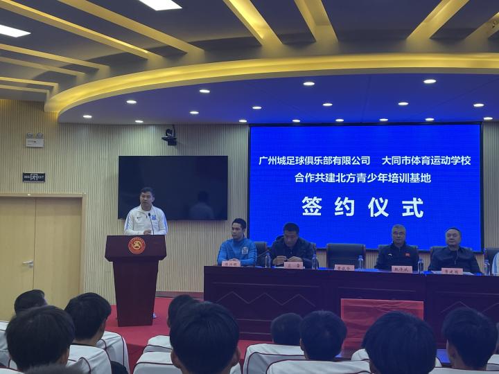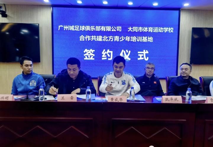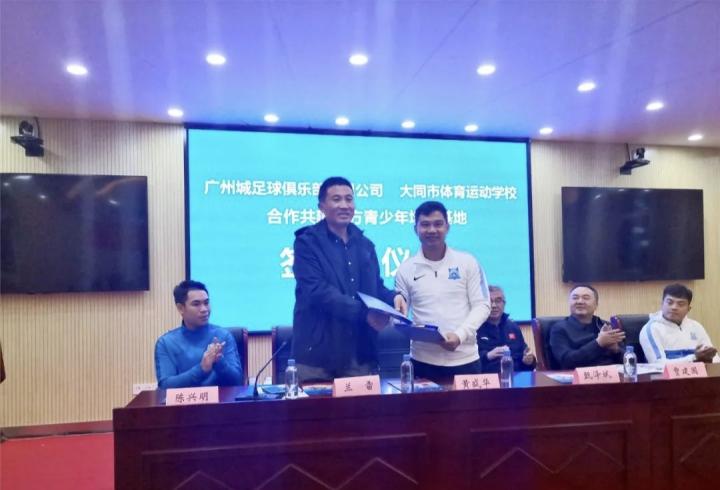 10月18日,广州城足球俱乐部与山西省大同市体育运动学校正式签订合作协议,双方将在足球青训领域进行深度合作,共同搭建广州城足球俱乐部北方青少年培训基地。