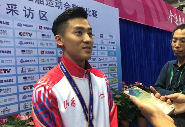 ▲伦敦奥运会男子蹦床冠军董栋