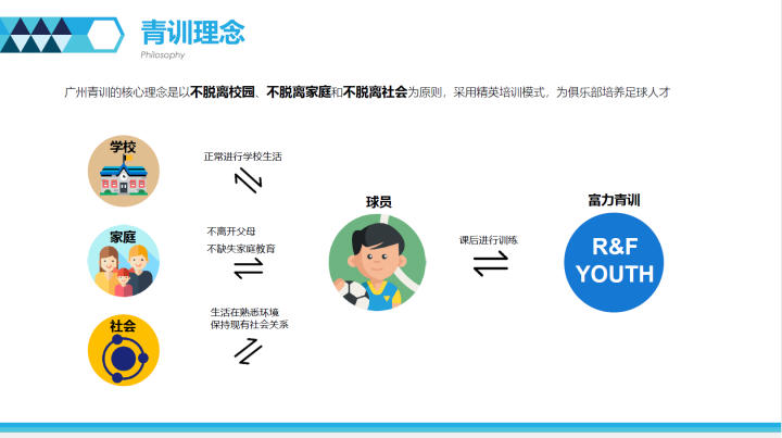 ▲富力广州青训“三不脱离”培养理念