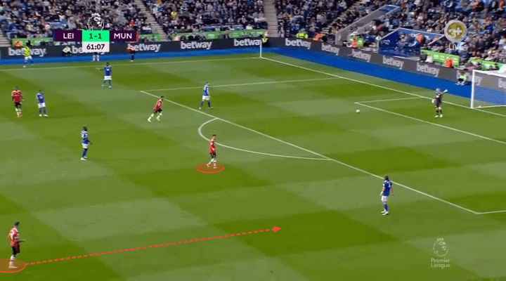 在曼联形同虚设的中场防线面前,莱斯特城的进攻显得有声有色。当你第一次看到莱斯特城的中场连线时,比如这次,苏马雷直传找伊希纳乔,你会认为这是一次出色的进攻。