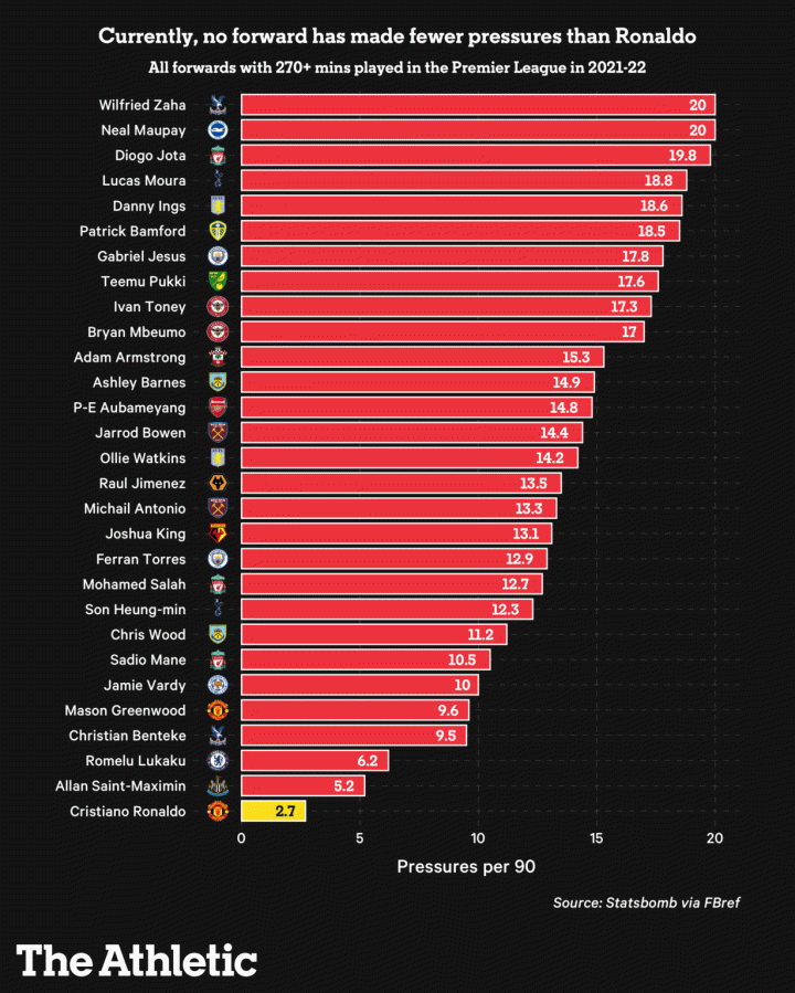 事实是,在英超前锋逼抢排行榜上,C罗排名垫底——没有人对这一事实感到惊讶。