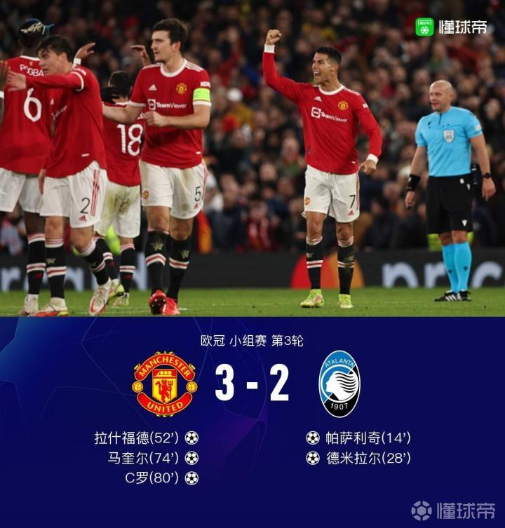 北京时间10月21日03:00,欧冠小组赛第三轮,曼联主场迎战亚特兰大。上半场帕萨利奇首开记录,德米拉尔扩大比分,拉什福德错失良机;下半场拉什福德、马奎尔、C罗连进三球完成反超。最终,曼联3-2亚特兰大。