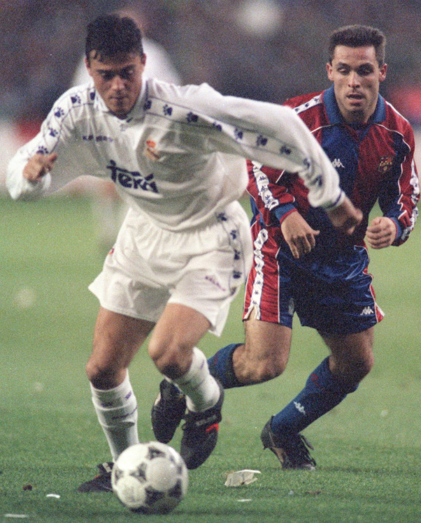 现任西班牙国家队主教练路易斯·恩里克(Luis Enrique)这次也榜上有名。恩里克于1991年从希洪竞技加盟皇家马德里,在首都球队度过了五年,还在1995年1月皇马5-0战胜巴萨的比赛中取得进球。在合同将要结束后,恩里克没有选择续约,因为他感觉在队中没有得到充分的赏识 ,所以在1996年转投加泰罗尼亚豪门。虽然一开始俱乐部对这位皇马旧将态度谨慎,但恩里克用能力证明了自己。他为红蓝军团效力8年,成为了球队的队长,并在207次出场中打进73球,成为一代红蓝传奇。2004年,他在34岁时选择退役,08年在巴萨B队开始执教生涯,14年出任一线队主帅,并带队加冕五冠王,成就了一段传奇。
