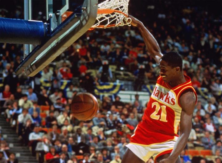 威尔金斯名声在外,多半是由于扣篮,以及和乔丹在扣篮大赛上的经典对决。他9次入选全明星,7次入选最佳阵容,还拿过一届得分王。但除此之外,他效力老鹰11个赛季,8次打入季后赛,其中5次止步首轮,从未打入过东决。总冠军和MVP,威尔金斯一样都没有。