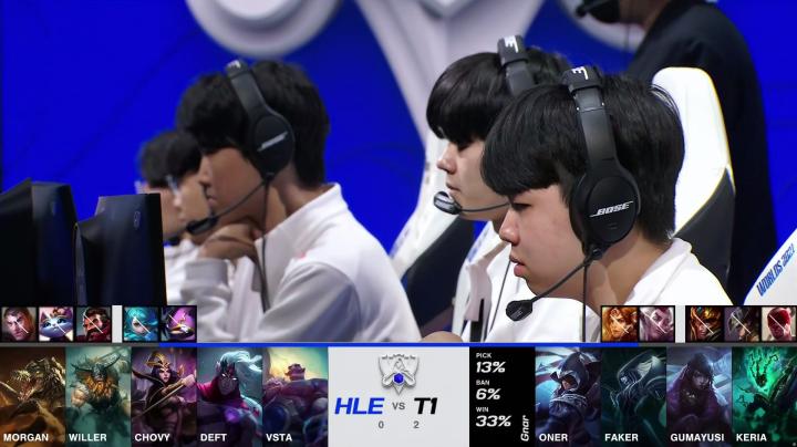 电竞赛事战报英雄联盟冰岛S11世界赛淘汰赛第一日T1 vs HLE,T1 3-0横扫HLE,Gumayusi输出拉满率先晋级四强。