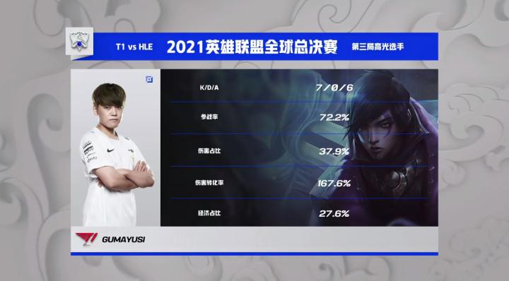 S11淘汰赛:T1 3-0横扫HLE,Gumayusi输出拉满率先晋级四强