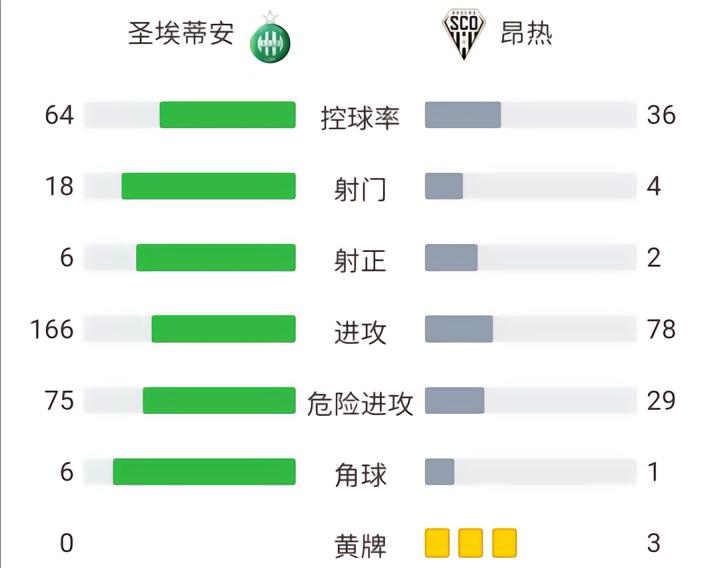 北京时间10月23日03:00,法甲第11轮先赛一场,副班长圣埃蒂安坐镇主场迎战昂热。赛前,主队球迷在看台上把众多烟火扔进球场导致球网、草皮受损,比赛被迫推迟一小时进行。上半场,伊斯梅尔-特拉奥雷抢点头槌首开记录。下半场,菲尔吉尼捅射建功助昂热扩大优势,哈兹里任意球世界波破门扳回一城,纳德尔读秒阶段高高跃起头球完成绝平。最终,圣埃蒂安主场连扳两城2-2逼平昂热,法甲11轮过后仍未尝胜绩。