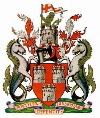 徽章还印有该市的拉丁格言,Fortiter Defendit Triumphans——“勇敢防御的胜利”——是在 1644 年勇敢而顽固地抵抗苏格兰人后采用的。