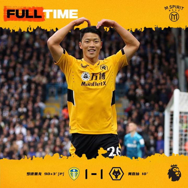 最终,我狼客场1-1战平利兹联,三连胜戛然而止,黄喜灿为我狼打入一球。