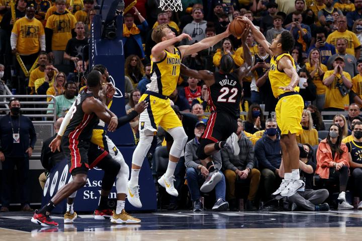 数据方面,步行者:萨博尼斯17分12板4助,杜阿尔特19分5板,布罗格登18分14板4助,霍勒迪7分5板,特纳4分4板,布里塞特18分9板;热火:巴特勒19分6板6助,希罗30分10板,阿德巴约17分16板3助,邓罗14分5板。