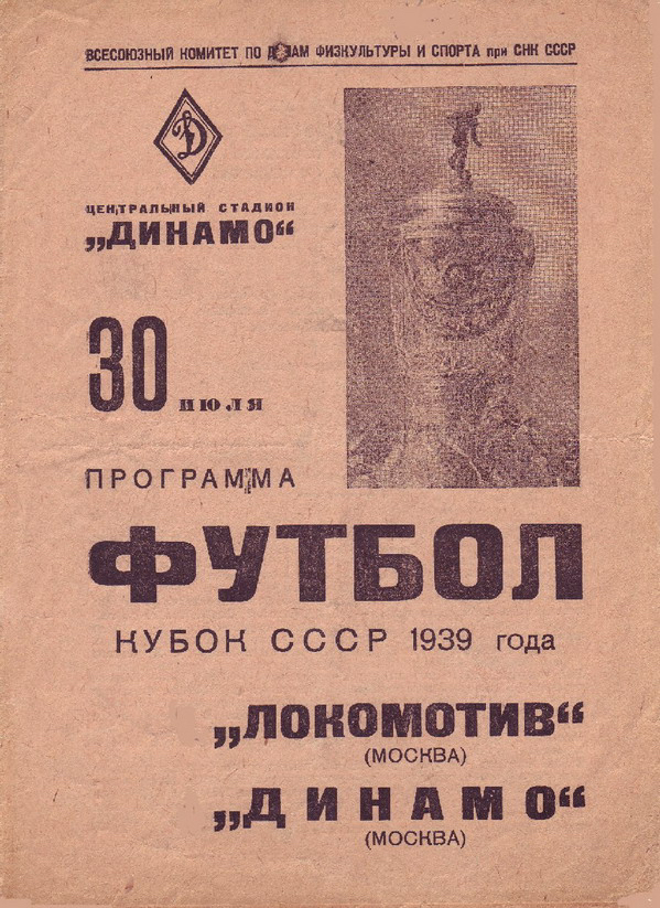 1939年苏联杯,莫斯科火车头对阵莫斯科迪纳摩队德比战海报