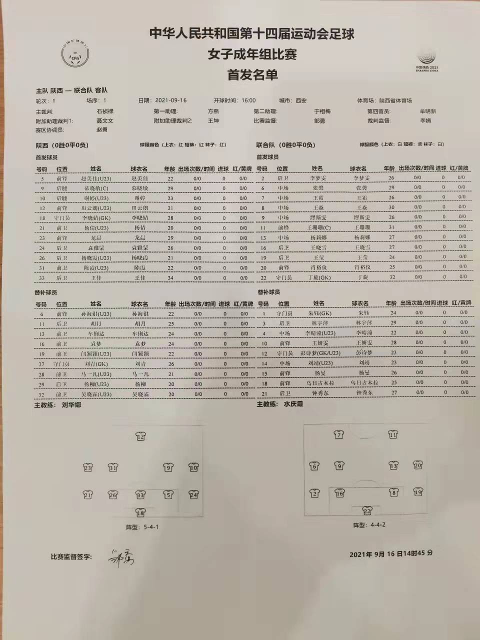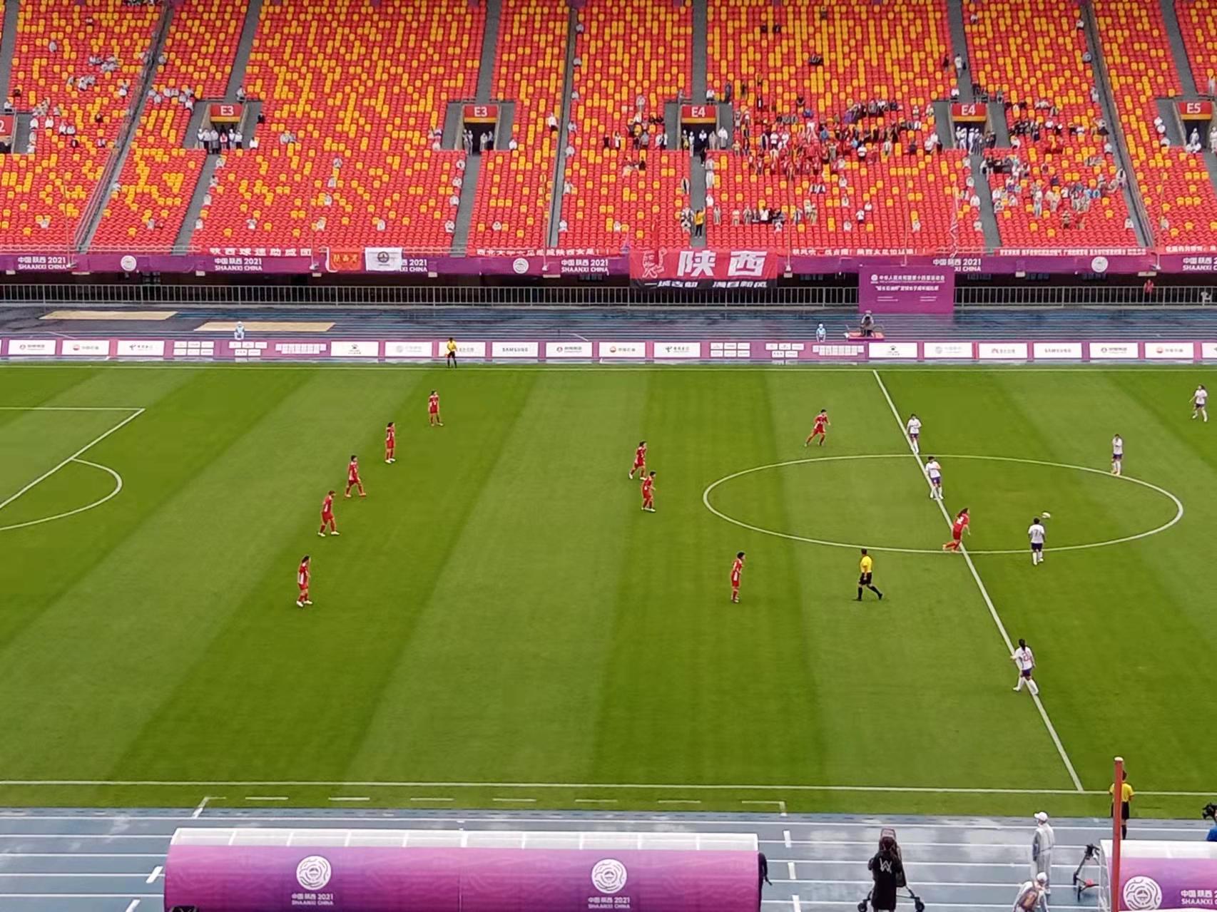 2021年9月16日,陕西省体育场迎来了十四运会女足项目成年组的揭幕战,由王霜、王珊珊和张馨等一众大牌领衔的夺冠大热门奥运会联合队,迎战东道主陕西女足。