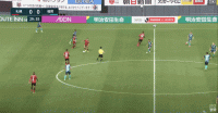 第10分钟,山本悠树精准长传转移找到左路的宇佐美贵史,宇佐美贵史的射门打在立柱内侧弹进球门。