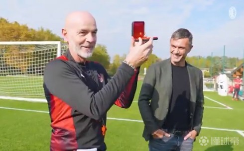AC米兰主帅皮奥利在今天的训练中,从马尔蒂尼手中接过了执教球队百场的纪念奖章。