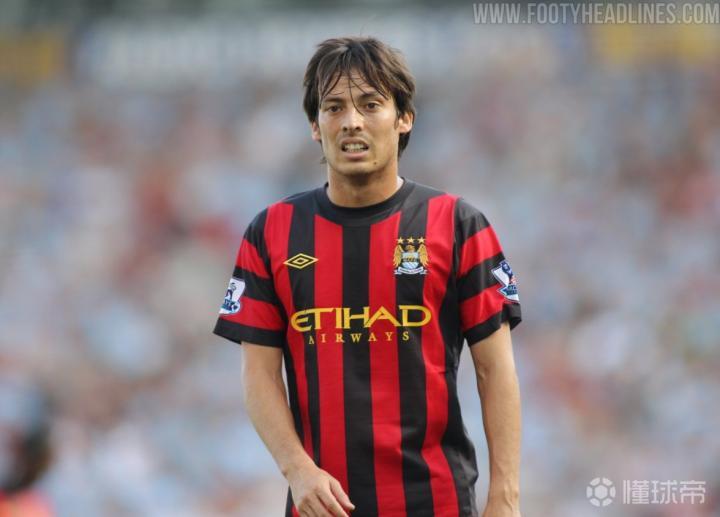 曼城上一次使用红黑间条衫作为其客场球衣还是在11/12赛季(上图大卫-席尔瓦所穿样式),如果再往前看,红黑间条衫也是曼城历史上经典的客场球衣设计,曾被球队多次使用。